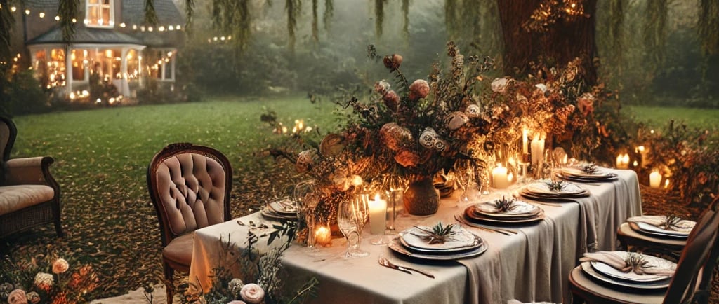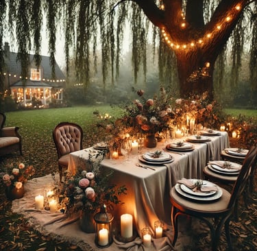 Ogni cena romantica al nostro B&B è un’esperienza sensoriale che inizia con la location. In primavera e in estate, offriamo la possibilità di cenare all'aperto, immersi nella magica cornice del nostro giardino. Al centro dell’area esterna si trova un salice piangente che crea un’atmosfera quasi fiabesca. Le sue fronde scendono dolcemente fino a sfiorare il laghetto, riflettendo le luci soffuse che illuminano la serata. L'aria fresca della sera, il fruscio delle foglie e il silenzio rotto solo dai suoni della natura rendono l'esperienza unica, trasformando ogni cena in un momento di pura magia.